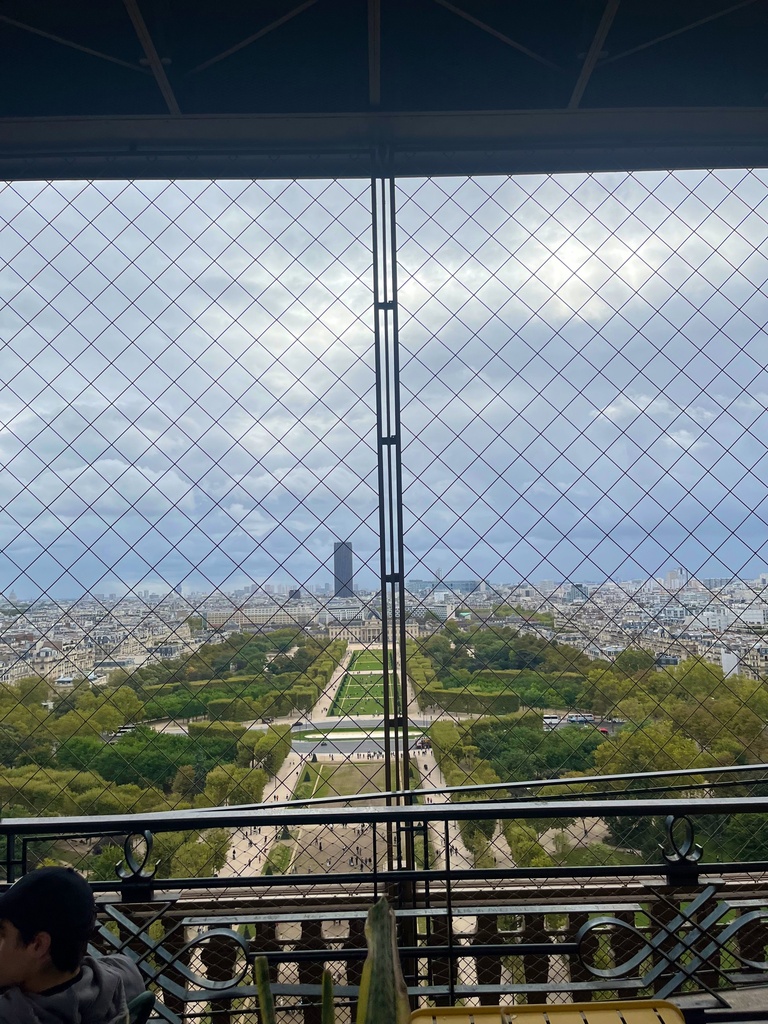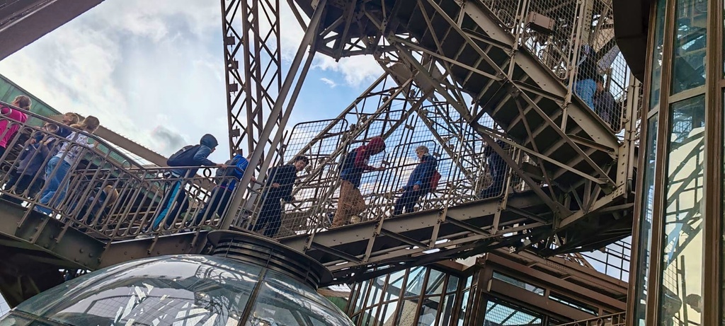 Nous sommes montés jusqu’au deuxième étage de la Tour. De là, nous avons profité d’une vue magnifique sur Paris : la Seine, les ponts, les monuments, ainsi que les nombreux quartiers de la capitale.