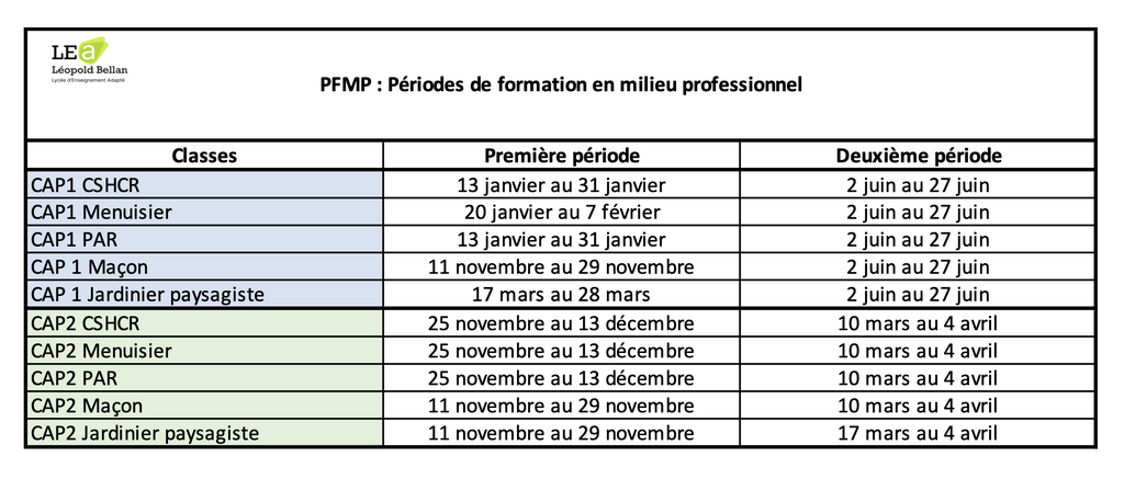 Périodes de formation en milieu professionnel